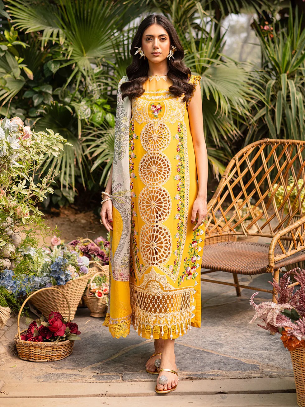 Parishay Shangrila Luxury Lawn Vol-II | Embroidered Yellow Unstitched Suit (SHR-09)
