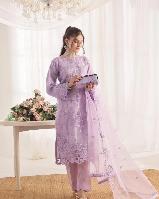 XENIA: The 4-Piece Embroidered Organza Luxury Ensemble with Matching Clutch