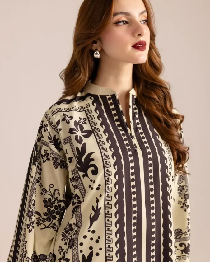 Zayna Women's Beige Digital Print Co-ord Set | 2PC Poly Lawn Outfit